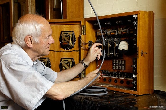 Kees Wissenburgh:”Some people say that the sound of a tube amplifier is warmer than that of a transistor amplifier. I don’t believe a word of it.”Jan Meijers (72) and Frans van Zuijlen (70) are repairing a load resistor. “With a device like this we can test generators that generate 380 volts”, explains Meijers. “The load resistor had to be disassembled because it contained asbestos. This device is from the high-voltage laboratory. Is this heritage?”(laughing) “Everything involving power current is slowly but surely becoming heritage.”