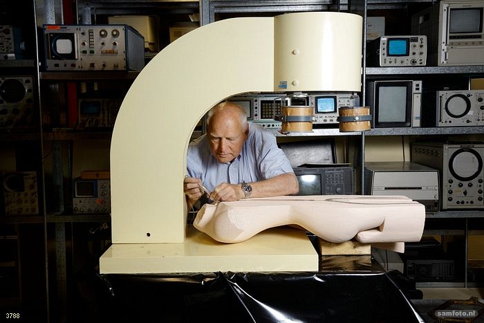 “The doll is made of polystyrene and came from a shop display”, continues Trimp, who started working in the basement when he retired three years ago. “I cut it through lengthwise and used garden hoses to model a circulatory system on the inside. This doll is genuine TU Delft heritage.”