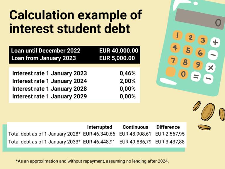 On 1 January 2023, the interest on student loans is going up. Tertiary professional education and university students will be charged an interest of 0.46%. Vocational education students will be charged an even higher interest: 1.78%.