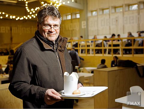 “Ik lunch hier altijd en vaak met noodles. Die zien er goed uit. Mijn favoriete lunch is rijst of bami. Ik neem er wel altijd een ei bij, dat hoort bij bami. Als ik mijn lunch uitkies, let ik vooral op hoe het er uitziet. Niet op hoe gezond het is. In de winter kies ik vaak voor iets warms en in de zomer voor iets frissers. Maar nu houd ik echt op met kletsen, anders wordt mijn bami koud.”