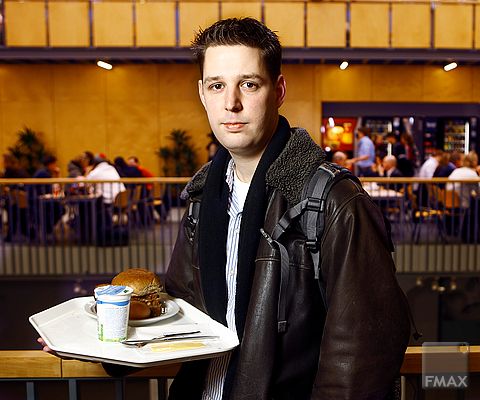 Roy Mulder, 23, student industrieel ontwerpen“Ik lunch een of twee keer per week op de faculteit. Ik varieer zo veel mogelijk, maar ik houd het meest van een oer-Hollandse lunch: bruin brood, kaas, melk.