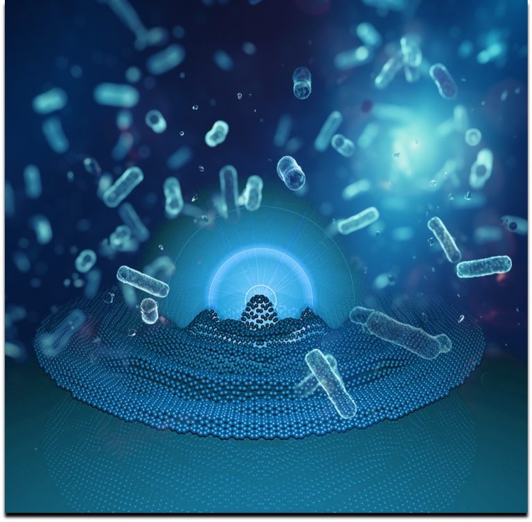 Impression of waves in a graphene membrane caused by bacteria. (Illustration: Santiago Mendoza Silva and Pierpaolo Belardinelli)