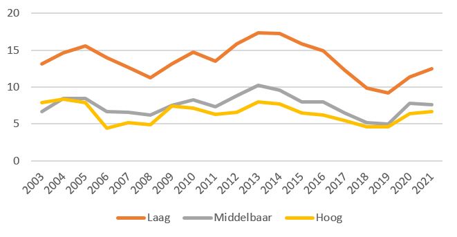 Highly educated people find it easy to find a job, compared to their peers. The difference with the lower educated is particularly striking. (HOP, BB)