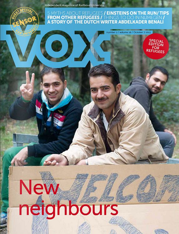 Vorige maand besloot de gemeente Nijmegen om drieduizend vluchtelingen op te vangen, niet ver van de Radboud Universiteit. Het leek de redactie van VOX een goed idee om de nieuwe tijdelijke buren een gezicht te geven en, omgekeerd, om hen kennis te laten maken met Nijmegen en de Radboud Universiteit. De speciale editie van VOX is dinsdagmiddag uitgedeeld bij de opvanglocatie.
