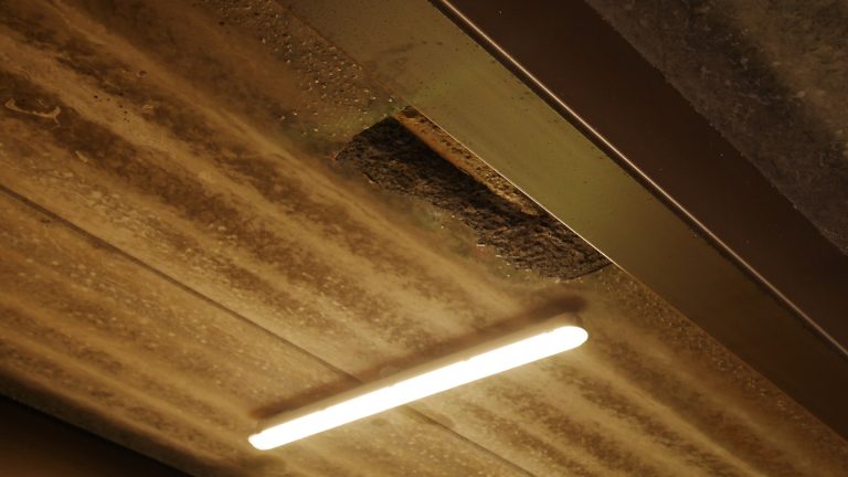 De nieuwe fietsenstalling bij de faculteit Industrieel Ontwerpen is maandagochtend enkele uren afgesloten geweest vanwege betondelen die van het plafond vielen. Een deel is afgezet met linten.