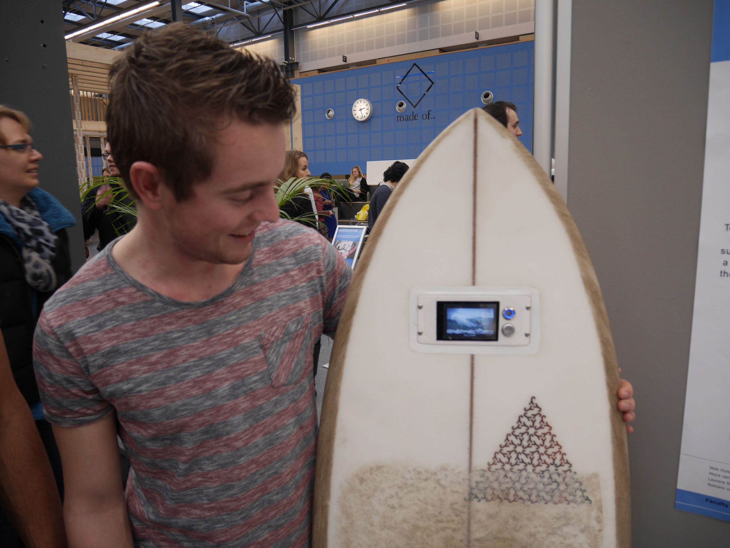 Studenten van de minor sports innovation ontwikkelden met het bedrijf JYSurf een prototype van een surfboard die feedback geeft tijdens het surfen. Deze JYNext heeft een schermpje waarmee surfers hun prestaties direct kunnen verbeteren. “Een coach maakt op de kant een filmpje van zijn surfende pupil”, zegt derdejaars werktuigbouwkunde Niek Huisman. “Dat filmpje kan hij met commentaar naar zijn pupil sturen, zodat die niet eerst naar de kant hoeft te komen. Hoe sneller je feedback krijgt hoe effectiever die verwerkt wordt, blijkt uit onderzoek.”