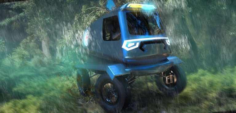 De opdracht bij de minor automotive design was een voertuig te ontwerpen die geschikt is in extreme omstandigheden zoals in een woestijn, de bergen, een poolgebied of de jungle. Voor dat laatste ontwierp derdejaars student industrieel ontwerpen Marijn van Bekkum een ambulance met elektrische wielaandrijving. “De ambulance heeft bedden met vering en hoge wielen zodat hobbels minder voelbaar zijn”, vertelt Van Bekkum. “In de jungle is het vaak donker door het bladerdak, daarom zitten er nachtcamera’s op.”
