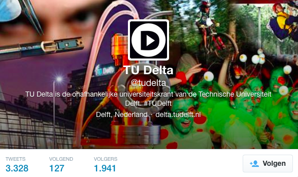 Volg @tudelta om nieuwe berichten op de Delta website te zien zodra ze zijn geplaatst. Tussen het heet-van-de-naald-nieuws door tweeten we een selectie van de artikelen die in de papieren editie van Delta zijn te vinden. Je kunt ons ook vragen stellen of van tips voorzien via Twitter.