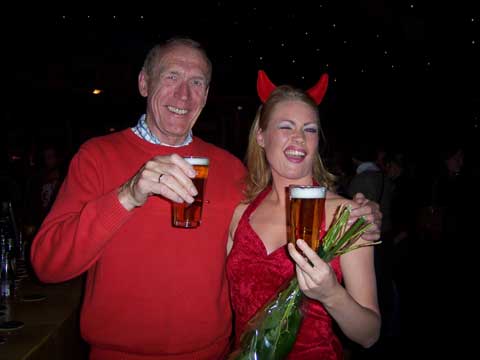 Het is grappig om bekenden in een totaal ander personage te zien, maar ik geniet het meest van de dans. Ik zit naast Matthijs de Jong, die alleen oog heeft voor zijn dansende vriendinnetje, en ik begrijp waarom. In sexy pakjes die niet veel aan de fantasie overlaten, dansen mooie meisjes op lekkere muziek. Of ze er nu als duivel of als matroos uitzien, Matthijs zit te likkebaarden.