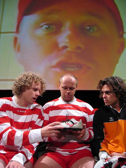 Beeld uit de toneelvoorstelling ‘De bal is rond’, die viermaal wordt opgevoerd. (Foto: Jan van der Mast)