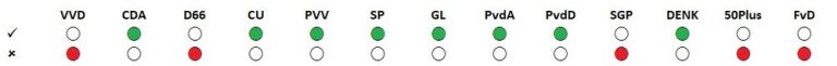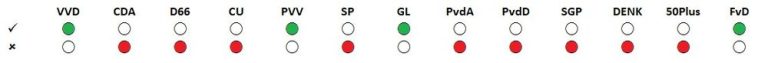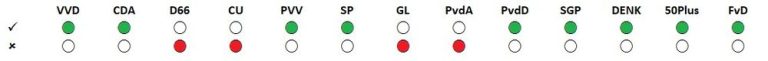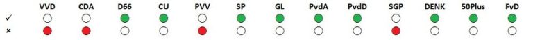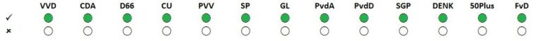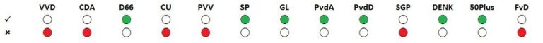 Voor: VVD, CDA, PVV, SP, PvdD, 50Plus, DENK, SGP, FvD.