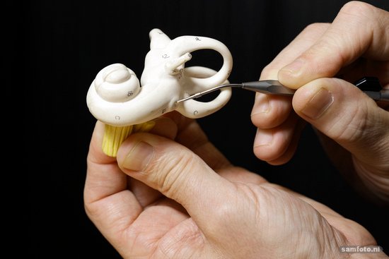 En vooral ook omdat hij de mogelijkheid heeft daadwerkelijk iets te doen wanneer een kind doof ter wereld komt. Nog voor de eerste verjaardag wordt dan een implantaat in het slakkenhuis aangebracht (een cochleair implantaat) dat in samenhang met een externe elektronische unit het kind in staat stelt om te horen en te leren spreken.