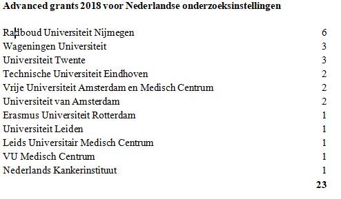Nederland doet het goed in de race om Europees onderzoeksgeld. 23 Topwetenschappers van Nederlandse onderzoeksinstellingen hebben een ‘advanced grant’ gekregen.
