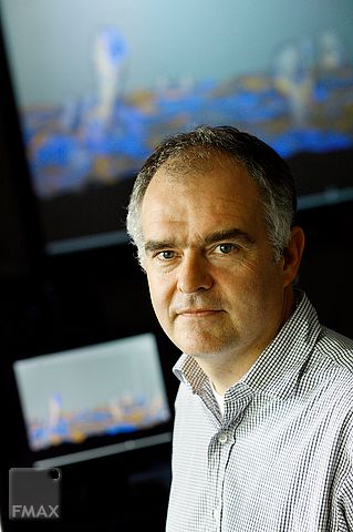 In een speciale ruimte bij de afdeling multi-scale physics (Technische Natuurwetenschappen) vliegen fluorescerende stofdeeltjes je om de oren. Althans zo lijkt het als je met een speciale 3D-bril kijkt naar een scherm waarop prof.dr. Harm Jonker wolken modelleert.