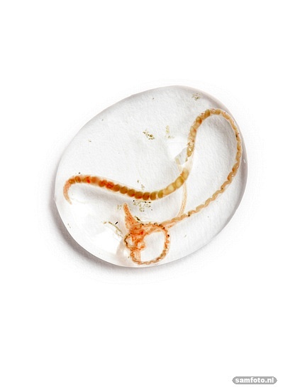 Promovendus De Valk heeft het kluitje wormen in een glazen potje gedaan en roert behoedzaam door het water. “Chemisch zijn ze heel sterk, maar ze hebben een fragiel lichaam.” En inderdaad – de wormpjes die vrijkomen uit de kluit zijn hooguit een millimeter dik en een centimeter lang. Ze zijn rood van kleur omdat ze net als wij een soort hemoglobine in het bloed hebben. Zuurstof halen ze uit het water met hun rondzwiepende staartjes terwijl ze aan de andere kant stukjes rioolslib naar binnen werken. Mjammie. Na een paar minuten zijn de wormen weer naar elkaar toe gekropen en vormen ze drie kluwens. “Ik weet ook niet waarom, maar ze vinden het gewoon lekker om bij elkaar te zitten.”