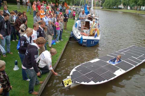 Ondanks dat de Delftse zonneboot vorig jaar de Frisian Solar Challenge heeft gewonnen met een gemiddelde snelheid van 17 km per uur, zien studenten Meinte van der Brug, Willem-Jan van Driel en Rinus de Vries (Werktuigbouwkunde, Maritieme Techniek & Technische Materiaalwetenschappen) mogelijkheid om de boot sneller te maken. Dat schrijven ze in de rapportage Snelheidspotentieel Solar Boat TU Delft over hun bacheloropdracht.